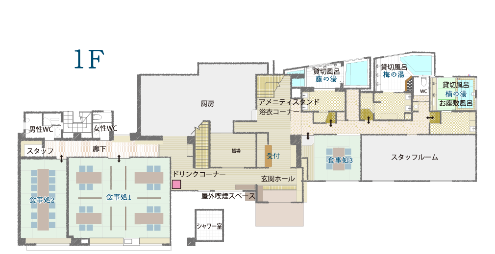 用途やグループに合わせて、様々なタイプの食事処ををご用意しております。